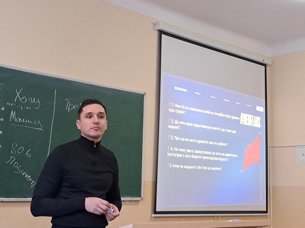 Основні питання гостьової лекції були визначені заздалегідь за запитом здобувачів, а саме: мотивація; стрес та набуття стресостійкості; мотивація до навчання й подолання прокрастинації; відкриття власного бізнесу.