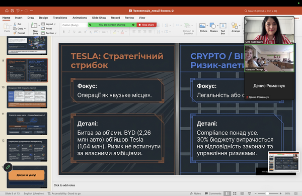 Гостьова лекція доц. кафедри менеджменту Ольги Тадеощук у ВНУ ім. Лесі Українки: як усвідомлений менеджмент формує фінансовий успіх