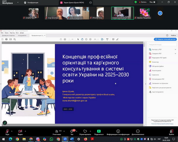 Під час роботи учасників семінару ознайомлено з напрямами реалізації Концепції професійної орієнтації та кар’єрного консультування у системі освіти України на 2025-2030 рр., а також презентовано практичний досвід роботи Центрів професійно-кар’єрної орієнтації низки закладів вищої освіти України в умовах воєнного стану.